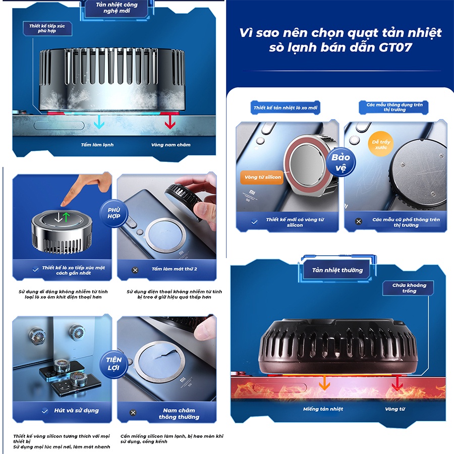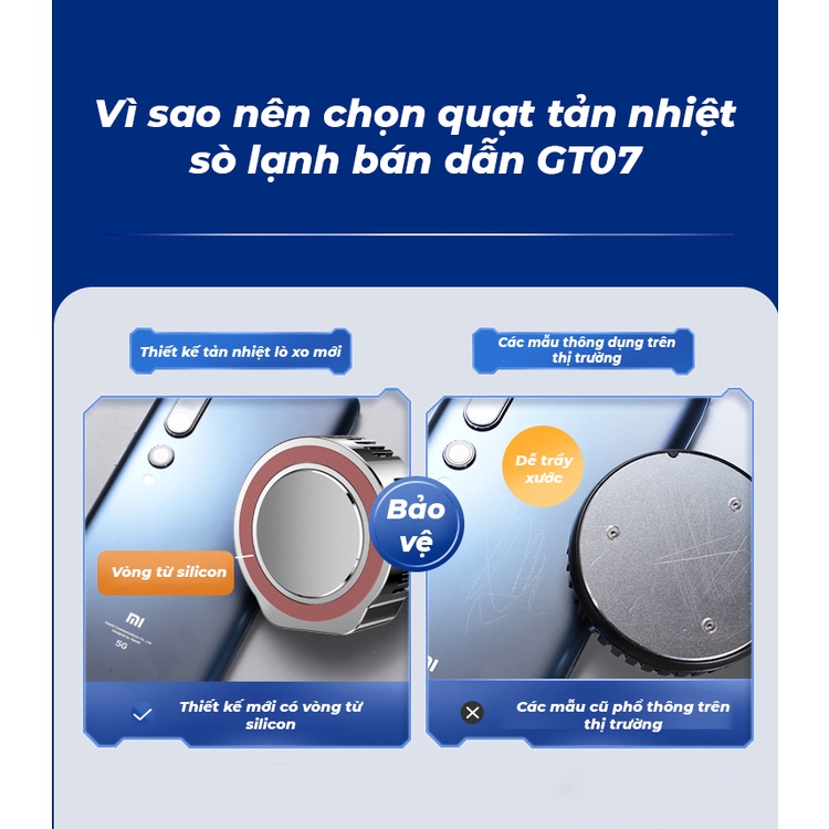 Thông tin chi tiết sản phẩm Quạt tản nhiệt điện thoại sò lạnh GT07 chơi game cao cấpSản phẩm: Quạt tản nhiệt điện thoại sò lạnh từ tính GT07