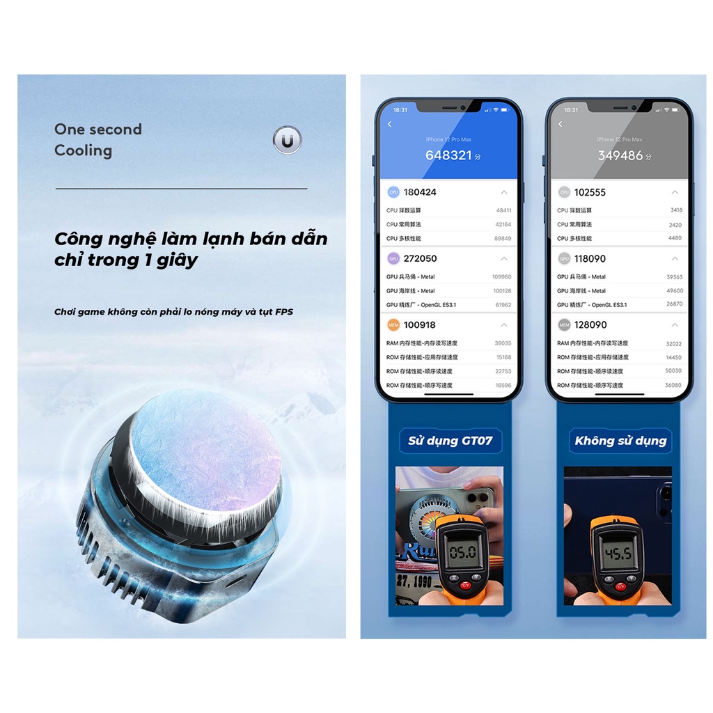 Quạt tản nhiệt điện thoại sò lạnh GT07 chơi game cao cấp - Tương thích với mọi loại thiết bị - Bảo hành 6 tháng
