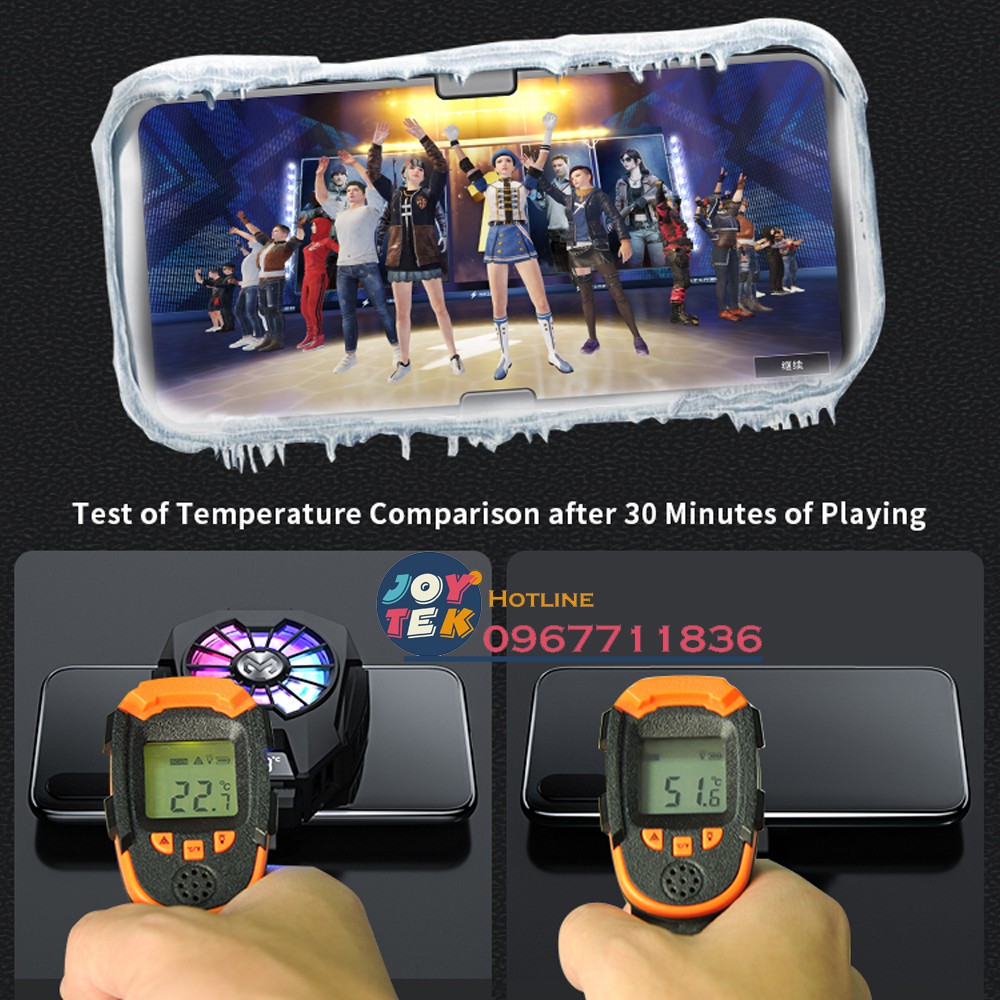 Memo DL05 | Quạt tản nhiệt sò lạnh cho điện thoại, Màn hình LED hiển thị nhiệt độ, LED RGB