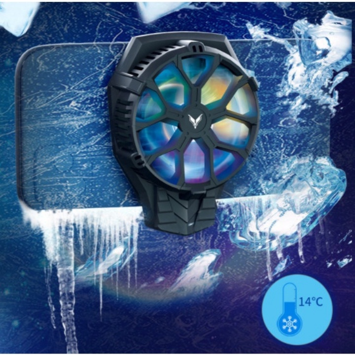 - Quạt tản nhiệt điện thoại có sò lạnh thiết kế góc cạnh cá tính, cầm chắc tay.