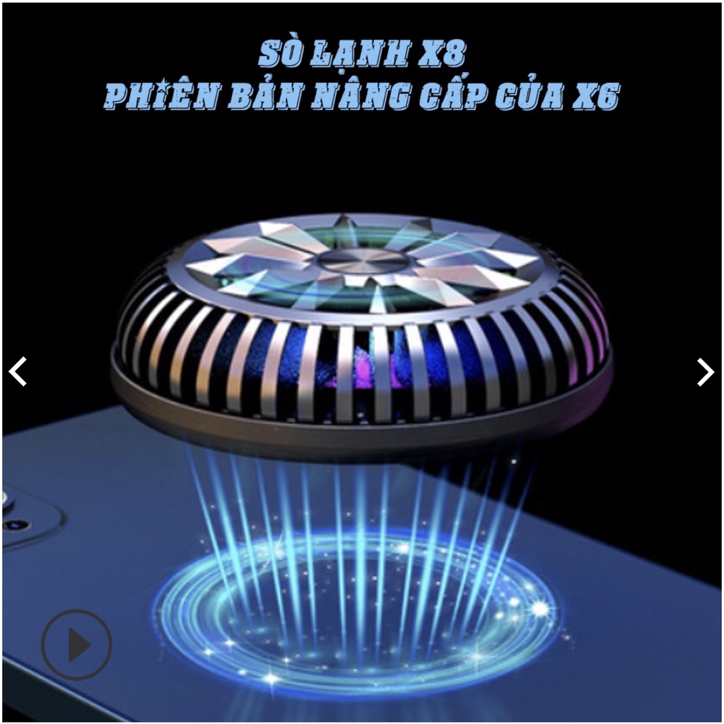 - Quạt tản nhiệt X8 là bản nâng cấp của quạt sò lạnh X6 với độ gia công ngon hơn, led đẹp hơn và lạnh hơn X6 khoảng 20% tùy điều kiện môi trường.