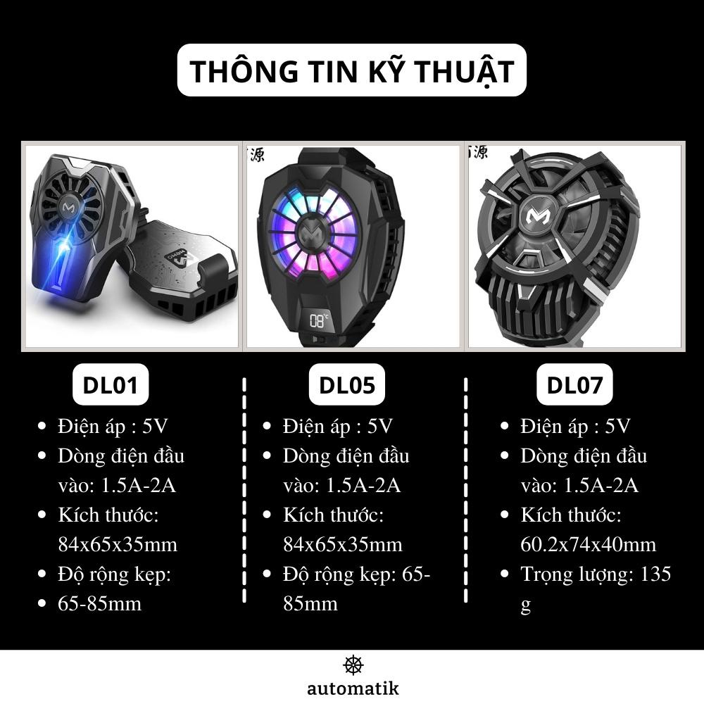 Quạt Tản Nhiệt Điện Thoại Sò Lạnh Làm Mát Memo Gaming LED DL01, DL05, DL07 - Automatik