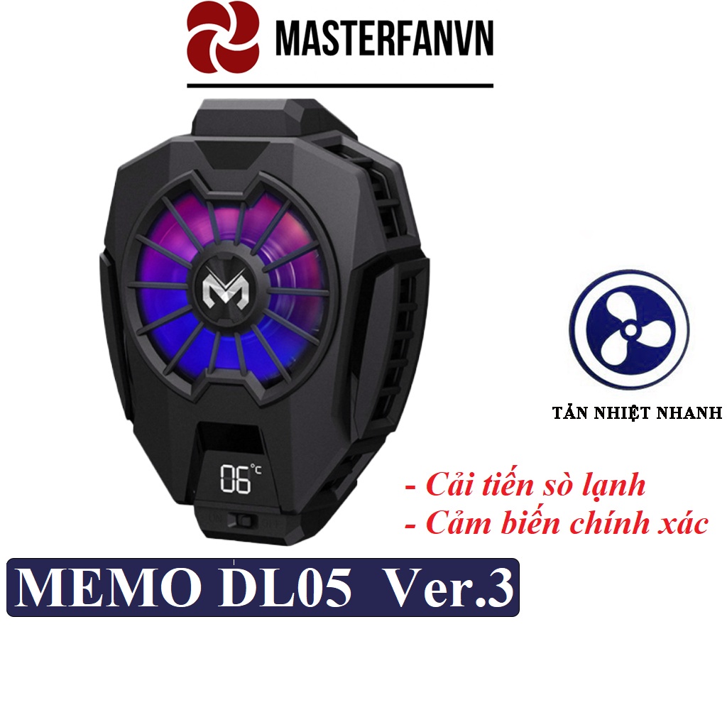 - Memo DL05 mới ra mắt 2021 là bản nâng cấp toàn diện của dòng Memo DL01 có đế tản nhiệt lớn nhất vật liệu tản tốt hơn, có màn hình LCD hiển thị nhiệt độ.