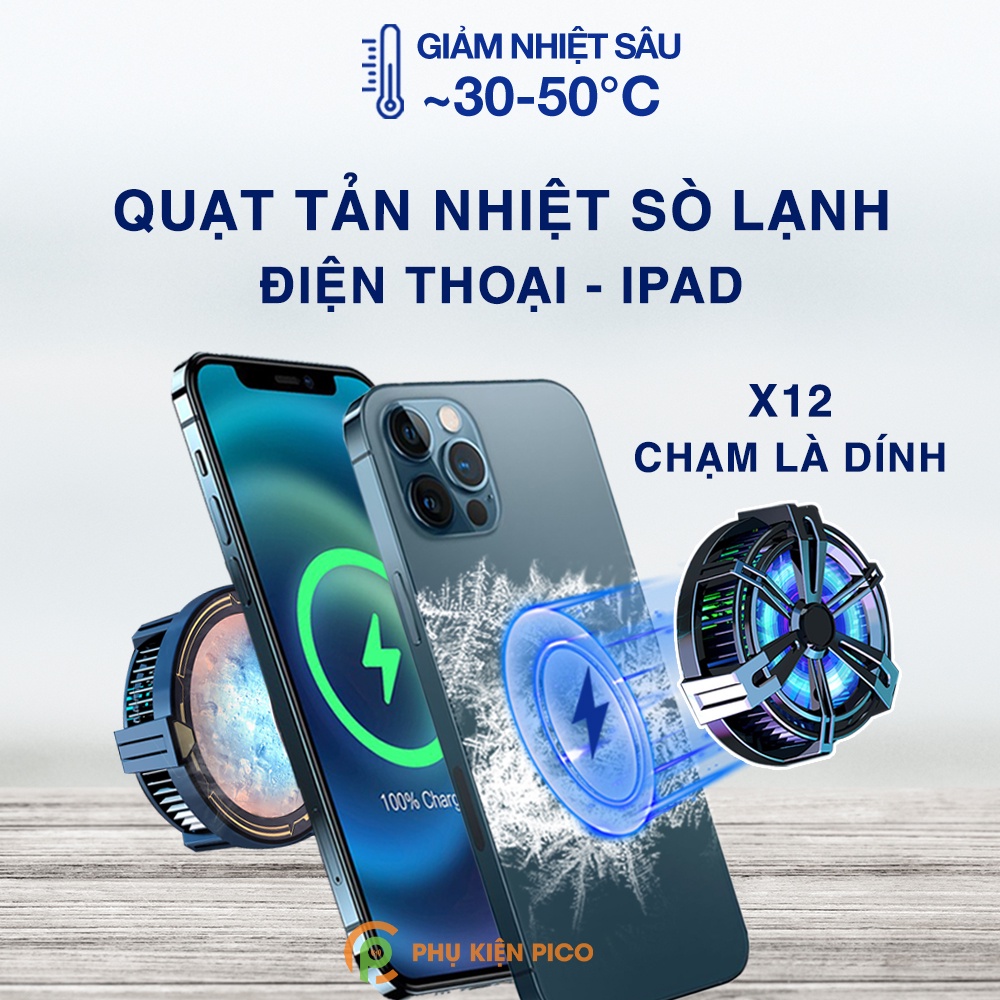 Quạt tản nhiệt điện thoại X6 / X8 / X12 nam châm - Quạt tản nhiệt sò lạnh Ipad máy tính bảng X12Quạt tản nhiệt sò lạnh nam châm X6 , X8 , X12 bám dính vào mặt sau điện thoại và máy tính bảng nhờ hít nam châm.