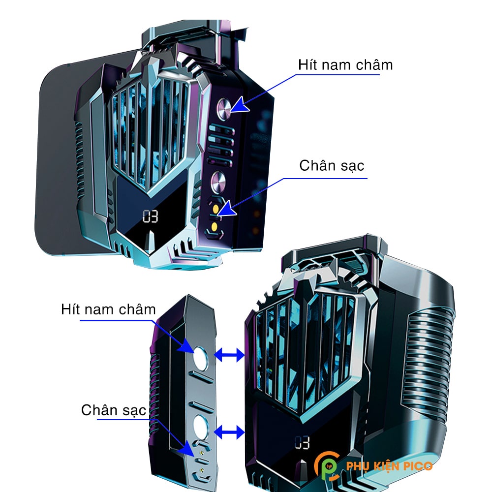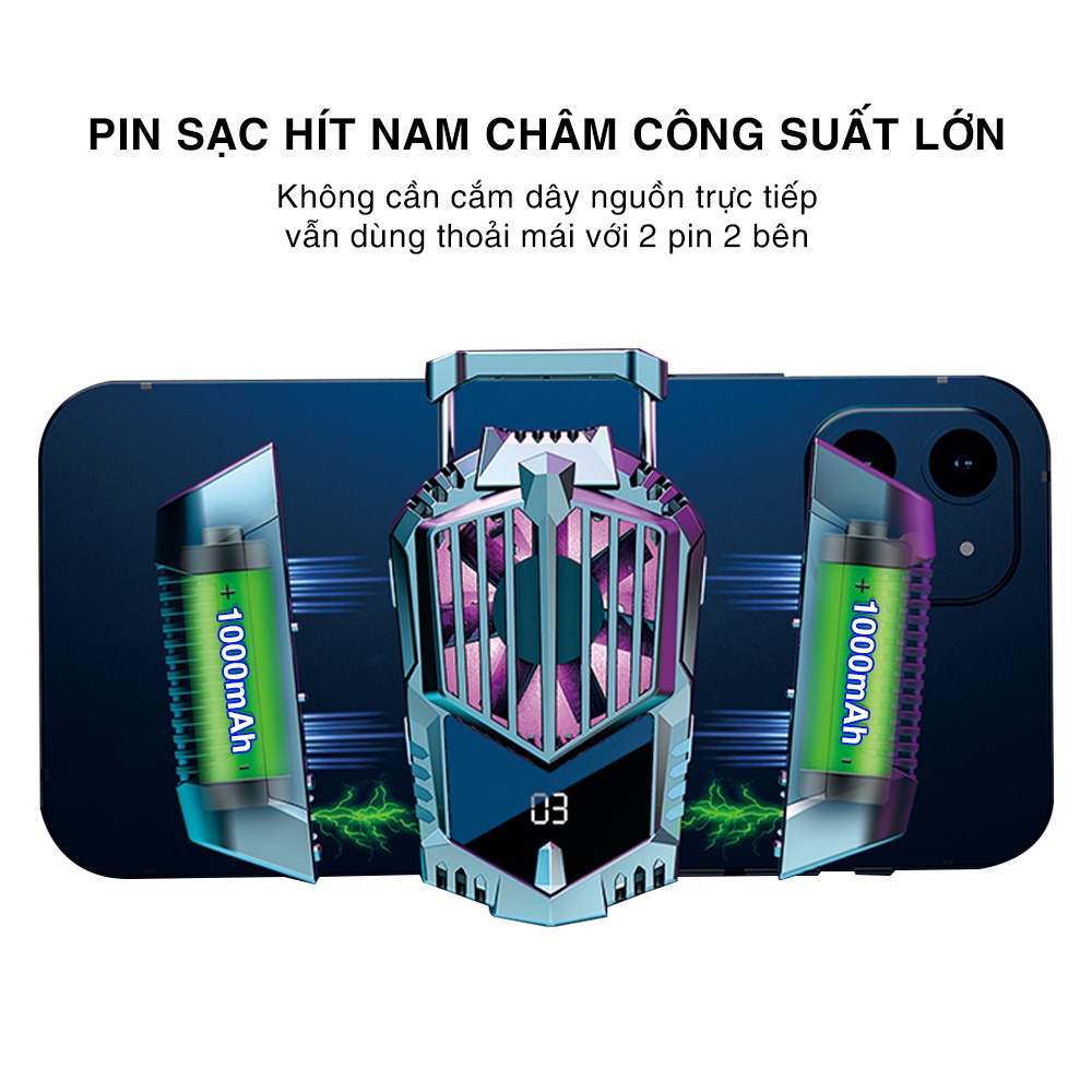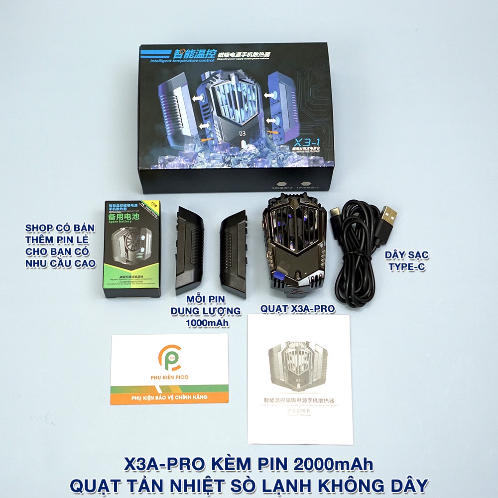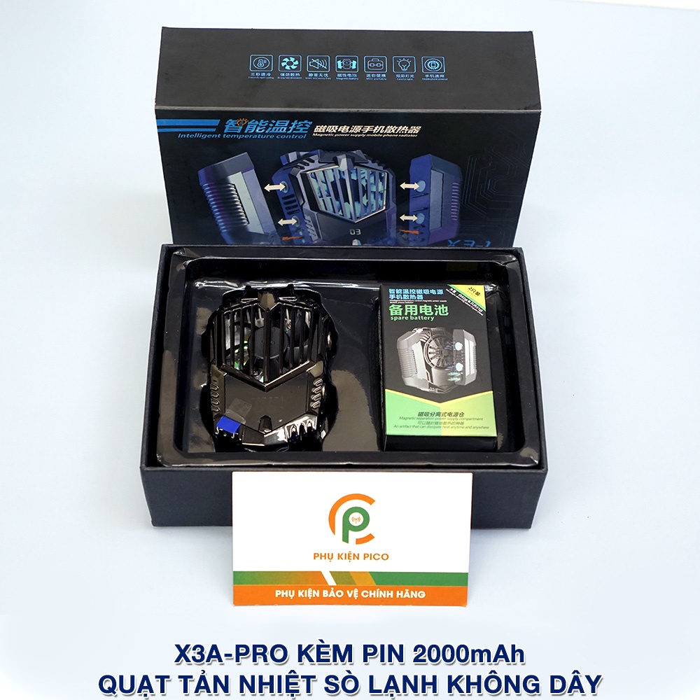 Quạt tản nhiệt điện thoại sò lạnh chạy Pin 2000mAh X3A Pro - Quạt sò tản nhiệt lạnh X3A Pro pin sạc không dây