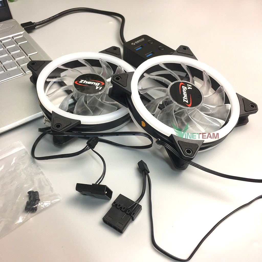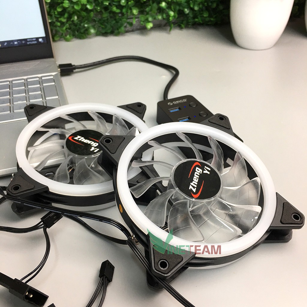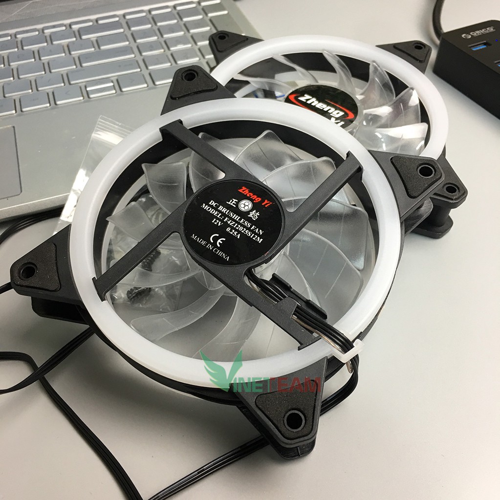 Quạt Tản Nhiệt, Fan Case 12cm ZHENGYI V2.1 Dual Ring - Led Nhiều Màu Kèm ốc gắn fan -dc4091