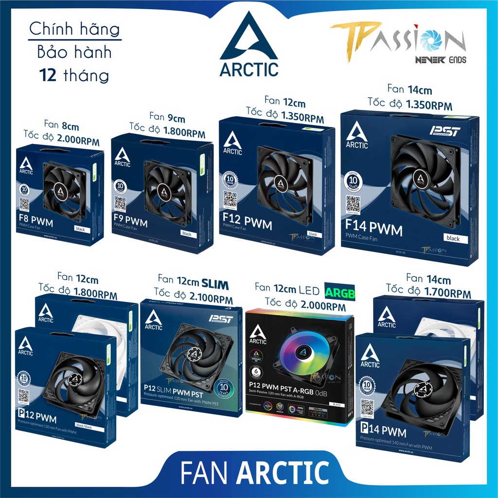 Máy tính & Laptop > Linh Kiện Máy Tính > Quạt và Tản Nhiệt || Quạt tản nhiệt Fan Case Arctic F8, F9, F12, F14, P12, P12 White, P14 PWM PST, BioniX, Slim - Chính hãng, quay êm, bềnCòn hàng