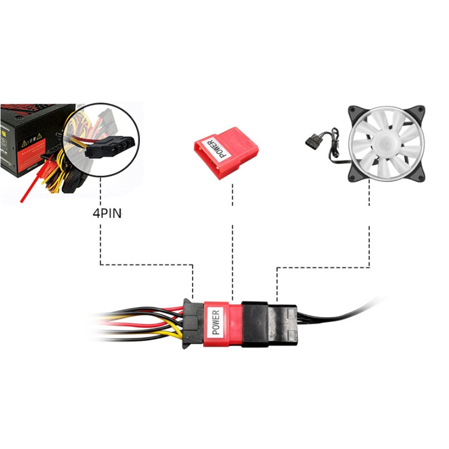 - Chân cấp nguồn: 4 Pin (Molex) cắm nối tiếp không giới hạn số lượng fan