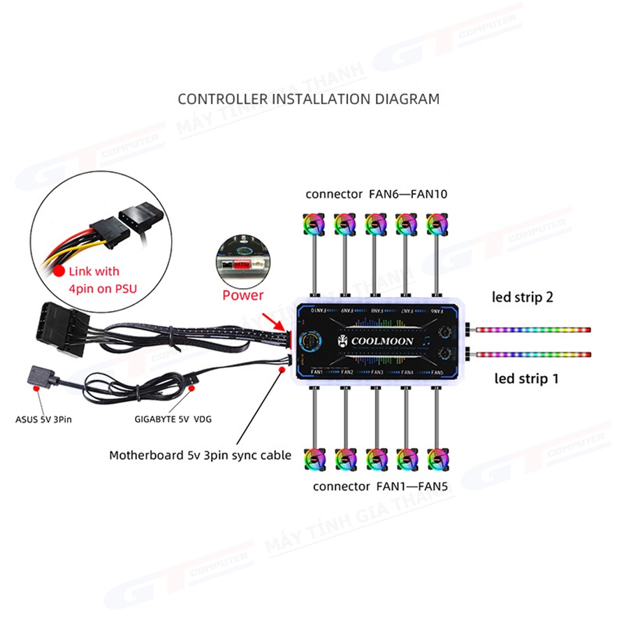- Cắm Fan vào Hub theo thứ tự 1-10 (dây LED RGB sẽ có 2 khe cắm)