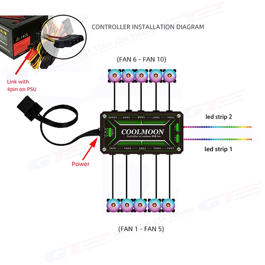 Trường hợp nguồn chỉ có 1 đầu 4pin thì ưu tiên gắn cho Hub trước rồi mới nối tiếp đến Fan Led Auto để tránh gây chập cháy không bảo hành.
