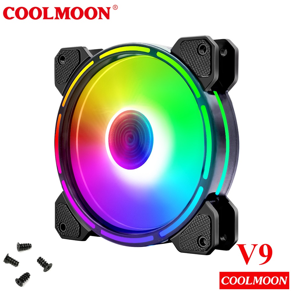 Máy tính & Laptop > Linh Kiện Máy Tính > Quạt và Tản Nhiệt || Quạt Tản Nhiệt, Fan Led ARGB Coolmoon V9 - Led Dual Ring (Led tâm + Led viền) - Tặng kèm ốc vítCòn hàng
