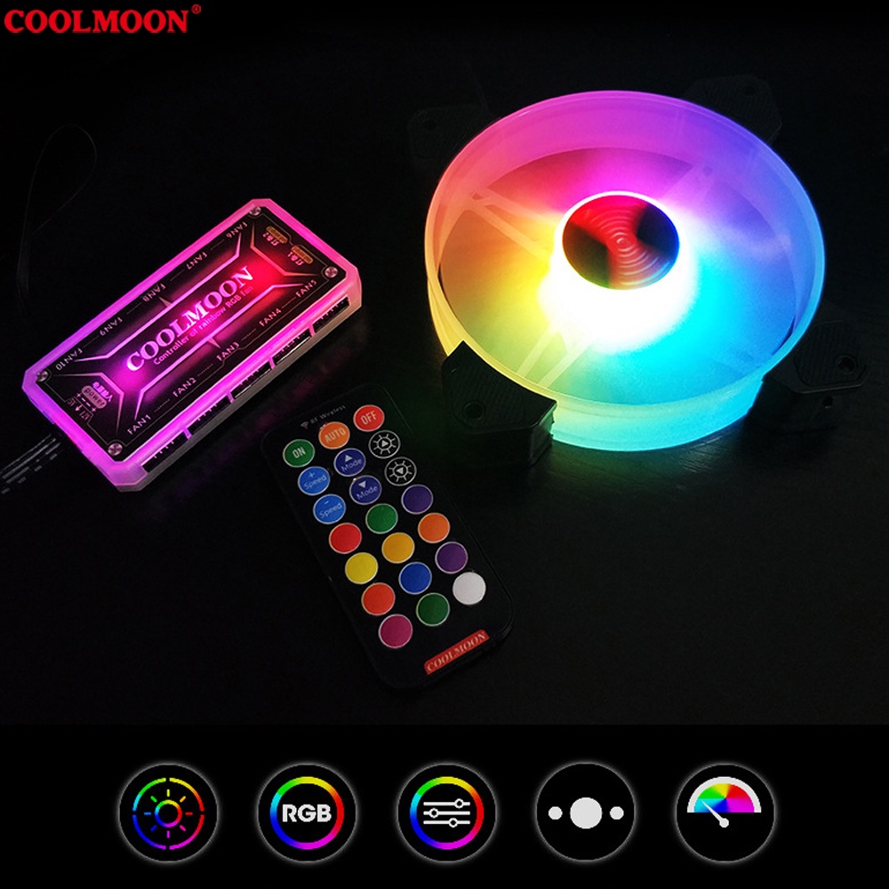 Quạt Tản Nhiệt, Fan Led ARGB Coolmoon Y1 & Bộ Hub Coolmoon + điều khiển - Tặng kèm ốc vít