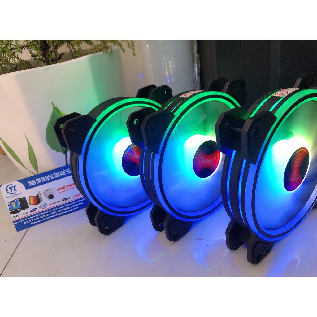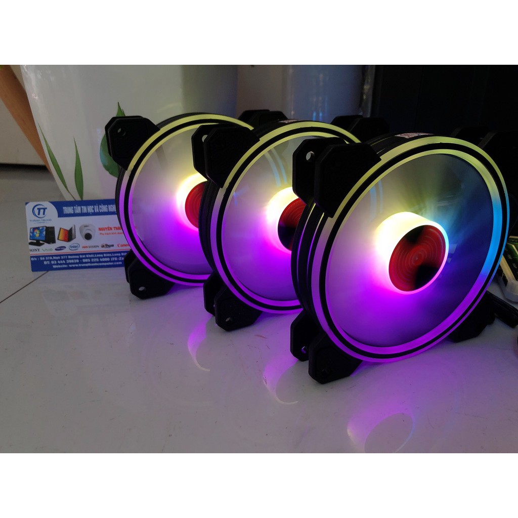 Bộ quạt tản nhiệt RGB rainbown 16 triệu màu cùng 366 hiệu ứng chuyển màu làm cho bộ máy tính của bạn sẽ lung linh nổi bật và thật phong cách.- Fan thiết kế với 2 vòng led ( dual riing) và tâm led giữa Fan kết hợp cùng cánh fan màu trắng nên tạo ra hiệu quả ánh sáng rất tốt.