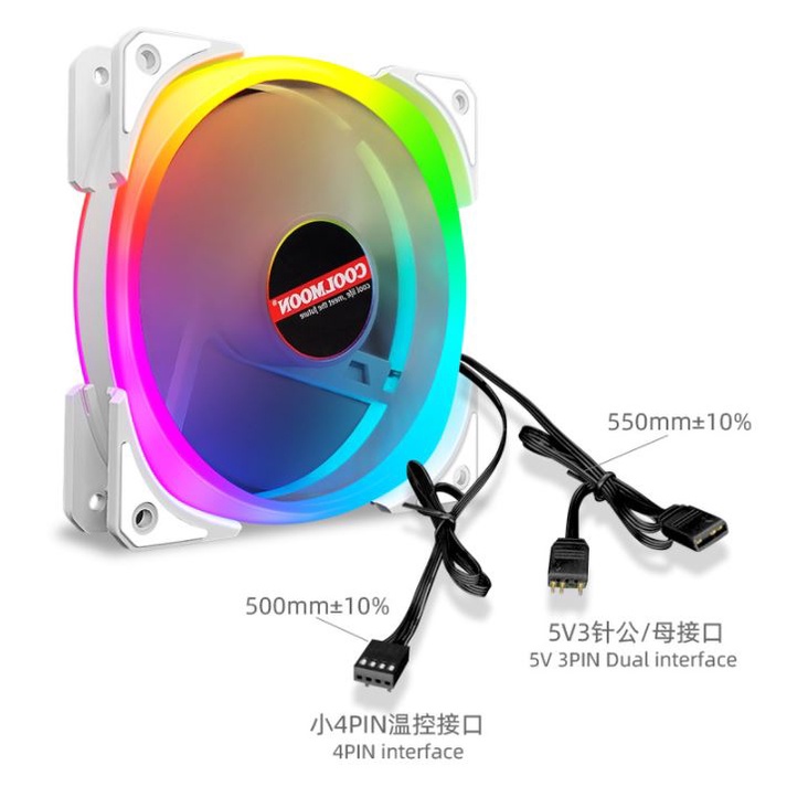 Quạt Tản Nhiệt, Fan Led RGB Coolmoon P3 Có Điều Tốc PWM - Led Sync Main 3 Pin 5v / Bộ Hub Coolmoon P-ARGB PWM