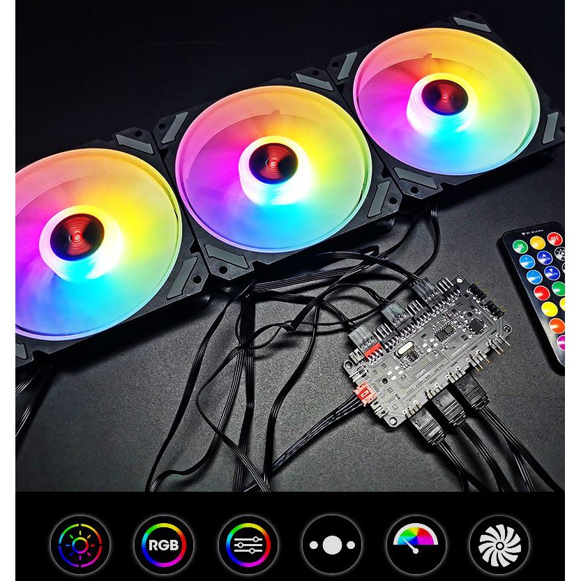 Giới thiệu Quạt Tản Nhiệt, Fan Led RGB Coolmoon X3 Có Điều Tốc PWM - Led Sync Main 3 Pin 5v / Bộ Hub Coolmoon P-ARGB PWM