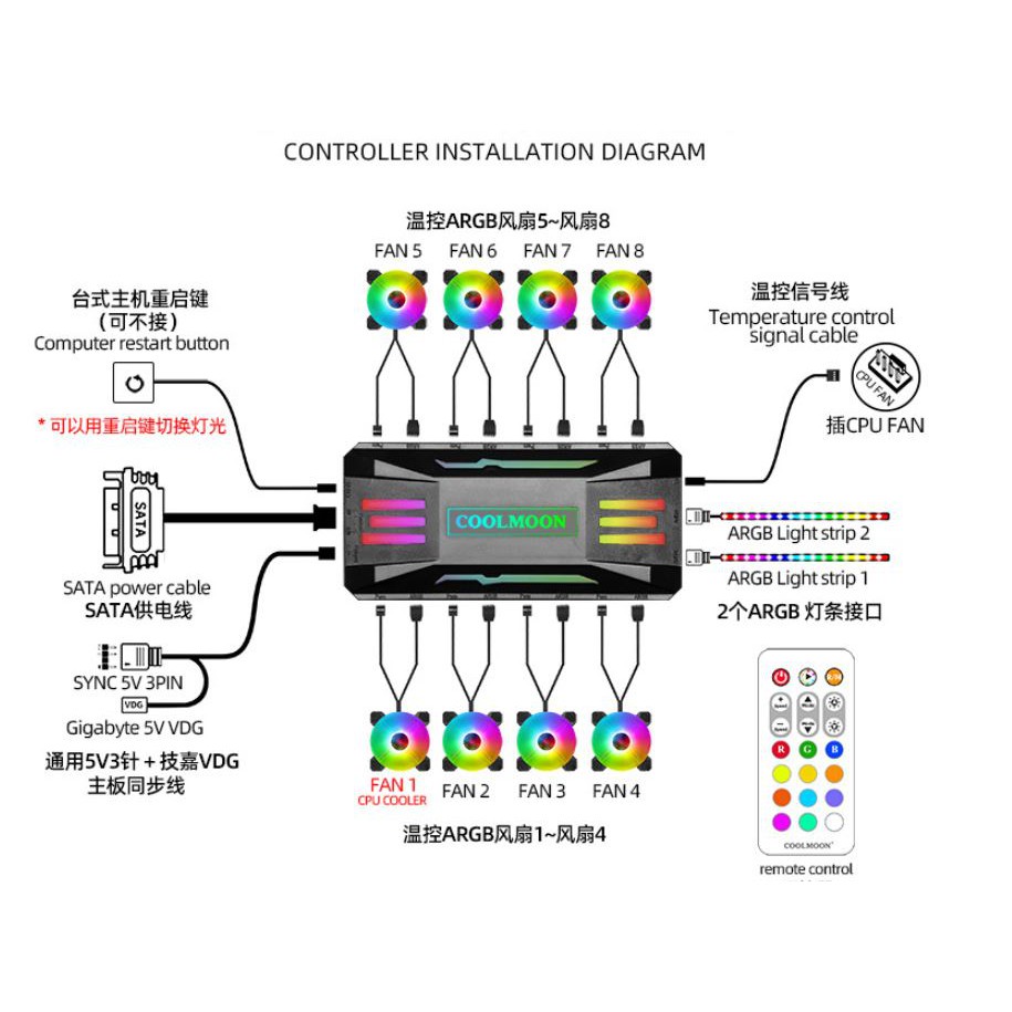 Sản phẩm mới đến từ Coolmoon với các chức năng mạnh mẽ:- Hỗ trợ kiểm soát nhiệt độ với chức năng điều tốc qua jack Fan 4 Pin PWM