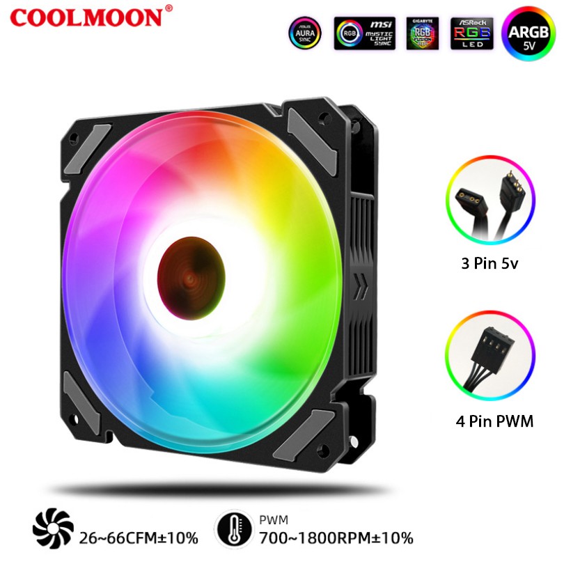 Quạt Tản Nhiệt, Fan Led RGB Coolmoon X3 Có Điều Tốc PWM - Led Sync Main 3 Pin 5v / Bộ Hub Coolmoon P-ARGB PWM