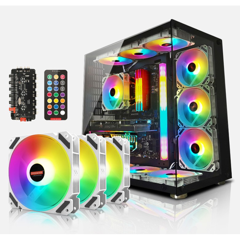 Máy tính & Laptop > Linh Kiện Máy Tính > Quạt và Tản Nhiệt || Quạt Tản Nhiệt, Fan Led RGB Coolmoon X3 Có Điều Tốc PWM - Led Sync Main 3 Pin 5v / Bộ Hub Coolmoon P-ARGB PWMCòn hàng