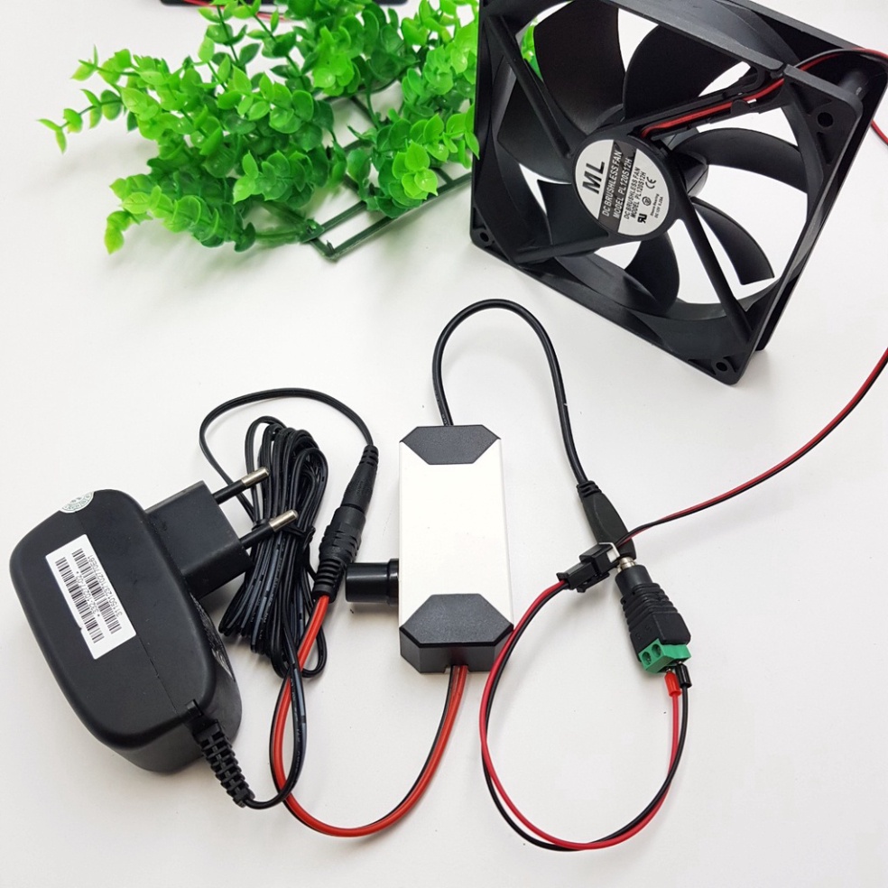 Quạt nối sẵn Điều Tốc Kèm Nguồn chuyển đổi 220V về 12V rất an toàn