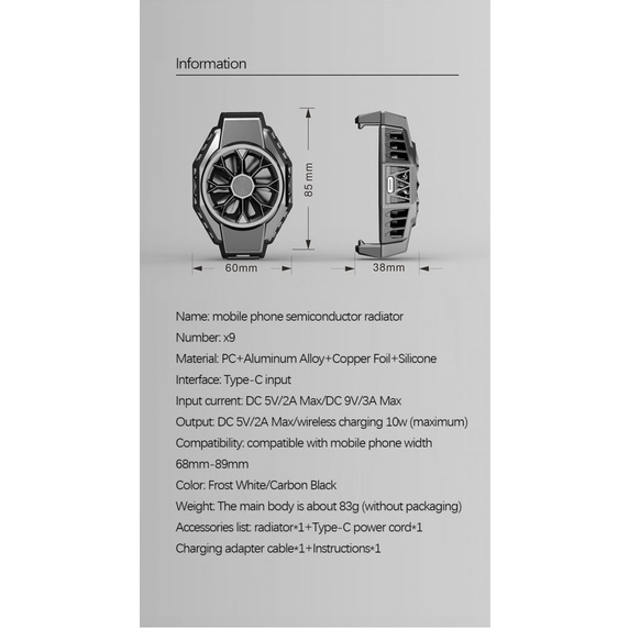 Note: water vapor or water droplets will be generated during the refrigeration process of the refrigeration radiator, which is a normal physical phenomenon of refrigeration and will not cause damage to the mobile phone