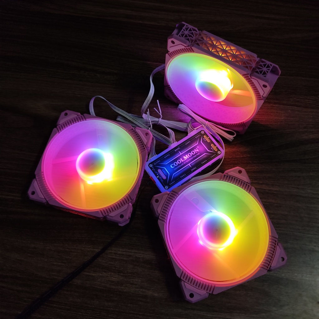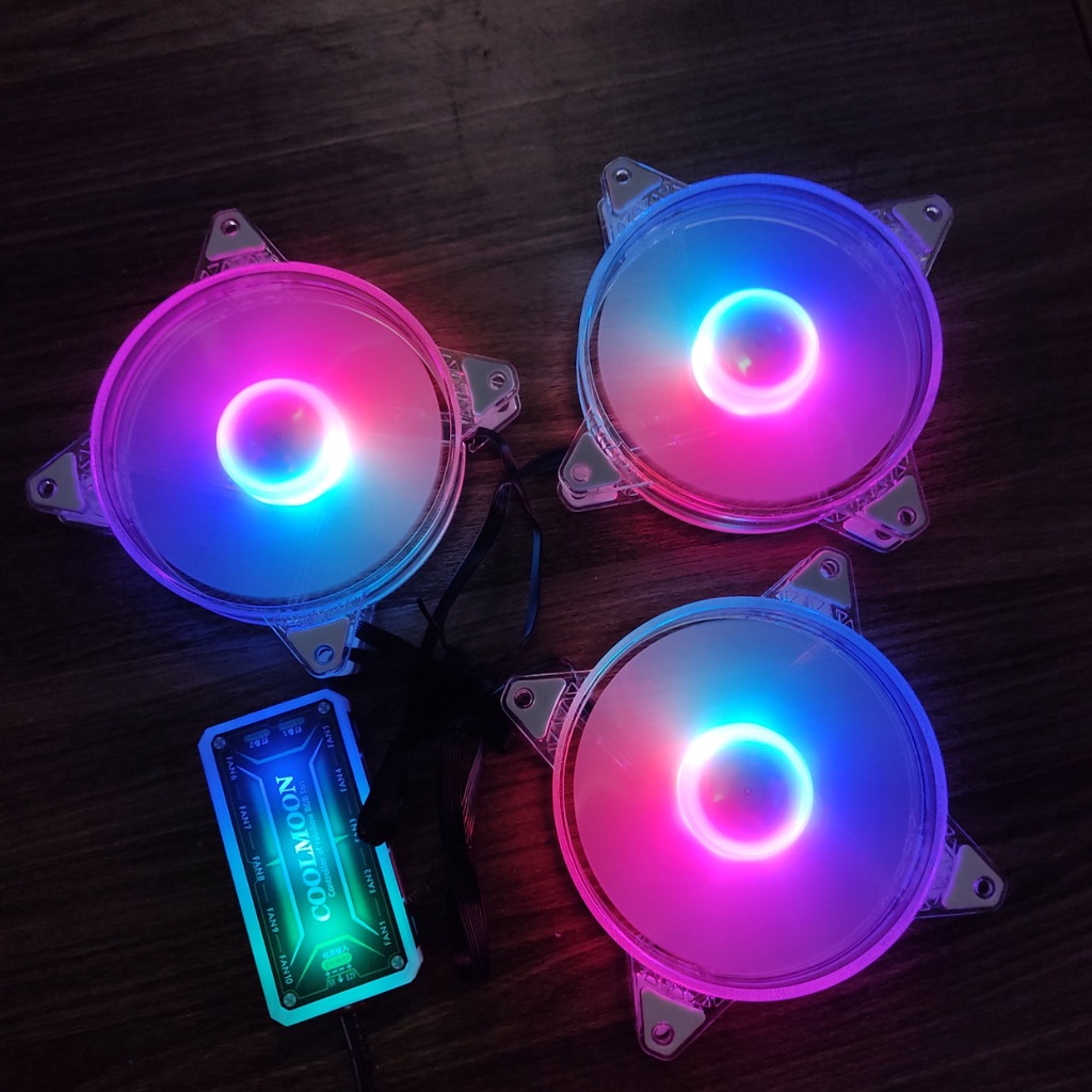 Máy tính & Laptop > Linh Kiện Máy Tính > Quạt và Tản Nhiệt || Quạt tản nhiệt làm mát máy tính, Fan case U1 V1 Q1, Fan Led RGB đồng bộ màu Hub Quạt CoolmoonCòn hàng