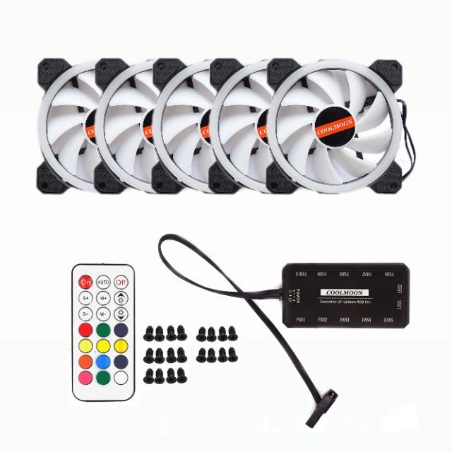 Máy tính & Laptop > Linh Kiện Máy Tính > Quạt và Tản Nhiệt || Quạt tản nhiệt lắp case Pc Game Thủ Coolmoon V2 AURA RGB rainbow Fan Led 12cm Kèm Bộ Hub Remote điều khiển nhiều chế đôCòn hàng