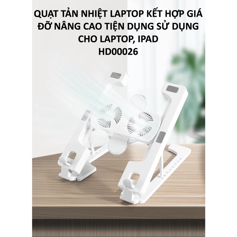 Quạt tản nhiệt laptop kết hợp giá đỡ nâng cao tiện dụng sử dụng cho Laptop, IPAD HD00026 (Giao màu ngẫu nhiên)