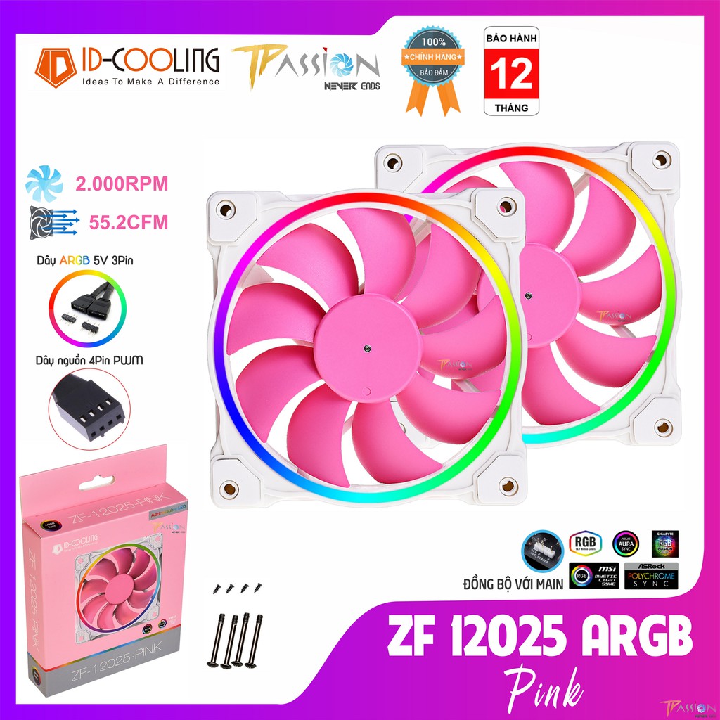 Máy tính & Laptop > Linh Kiện Máy Tính > Quạt và Tản Nhiệt || Quạt tản nhiệt LED ARGB ID-Cooling ZF-12025-PINK - Fancase 12cm, cánh quạt hồng, sức gió mạnh, hiệu ứng RGB viền đa màuCòn hàng