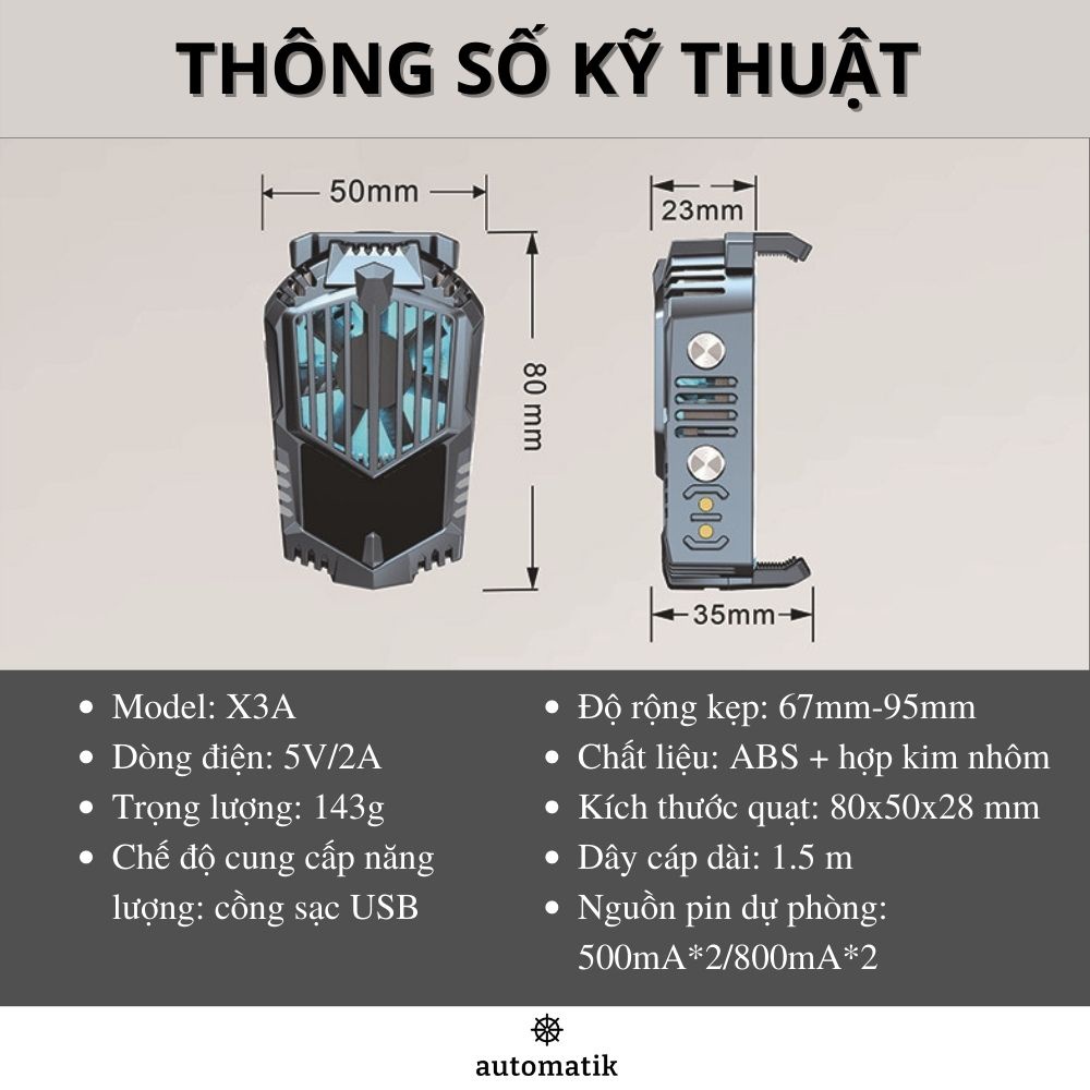 Giới thiệu Quạt Tản Nhiệt LED Sò Lạnh Làm Mát Điện Thoại Có Pin Không Dây X3A - Automatik
