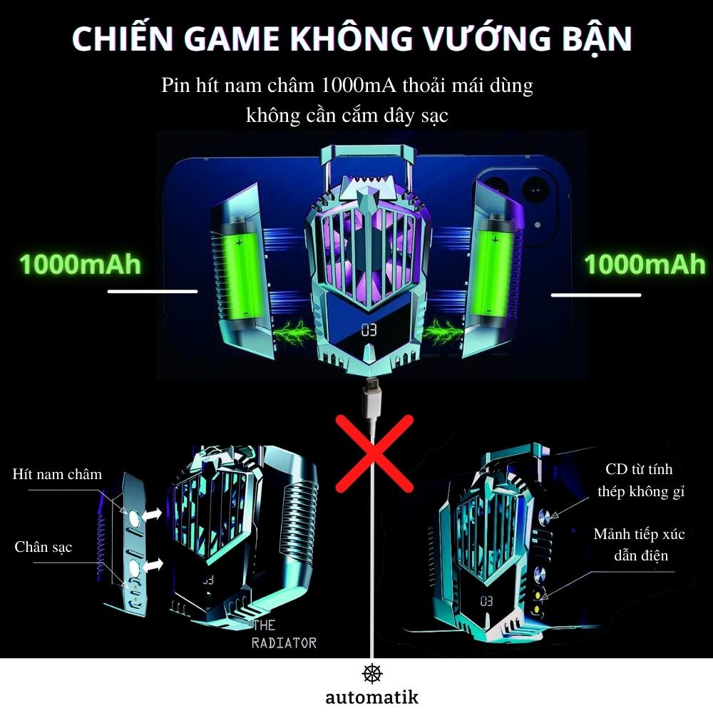 Quạt Tản Nhiệt LED Sò Lạnh Làm Mát Điện Thoại Có Pin Không Dây X3A - Automatik