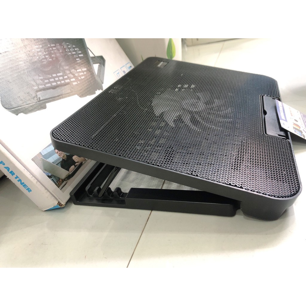 Tuy mang thiết kế khá đơn giản, không quá màu sắc và nhiều đường nét cách điệu nhưng đế tản nhiệt vẫn được nhà sản xuất thiết kế bề mặt nâng đỡ laptop rộng lớn, phù hợp với những laptop có kích thước lên đến 14 inch. Bên cạnh đó, quạt công suất 1000 vòng/ phút, ít tiếng ồn cũng là ưu điểm nổi bật của đế trên thị trường hiện nay.