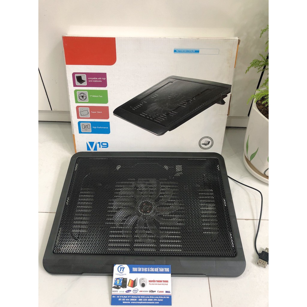Quạt kích thước lớnĐế tản nhiệt N19 được trang bị một quạt có kích thước 14 cm, được đặt ở vị trí trung tâm mặt đế, giúp toàn bộ bề mặt của laptop đều được đối lưu không khí liên tục và nhanh chóng. Ngoài ra, đế còn được thiết kế mặt trên dạng lưới cùng các mặt còn lại có nhiều lỗ khoét rộng, đảm bảo khối không khí nóng từ laptop khi nhanh chóng được tỏa ra môi trường ngoài, tránh tình trạng khí nóng tích tụ lâu trong lòng đế làm ảnh hưởng đến hiệu năng làm việc.