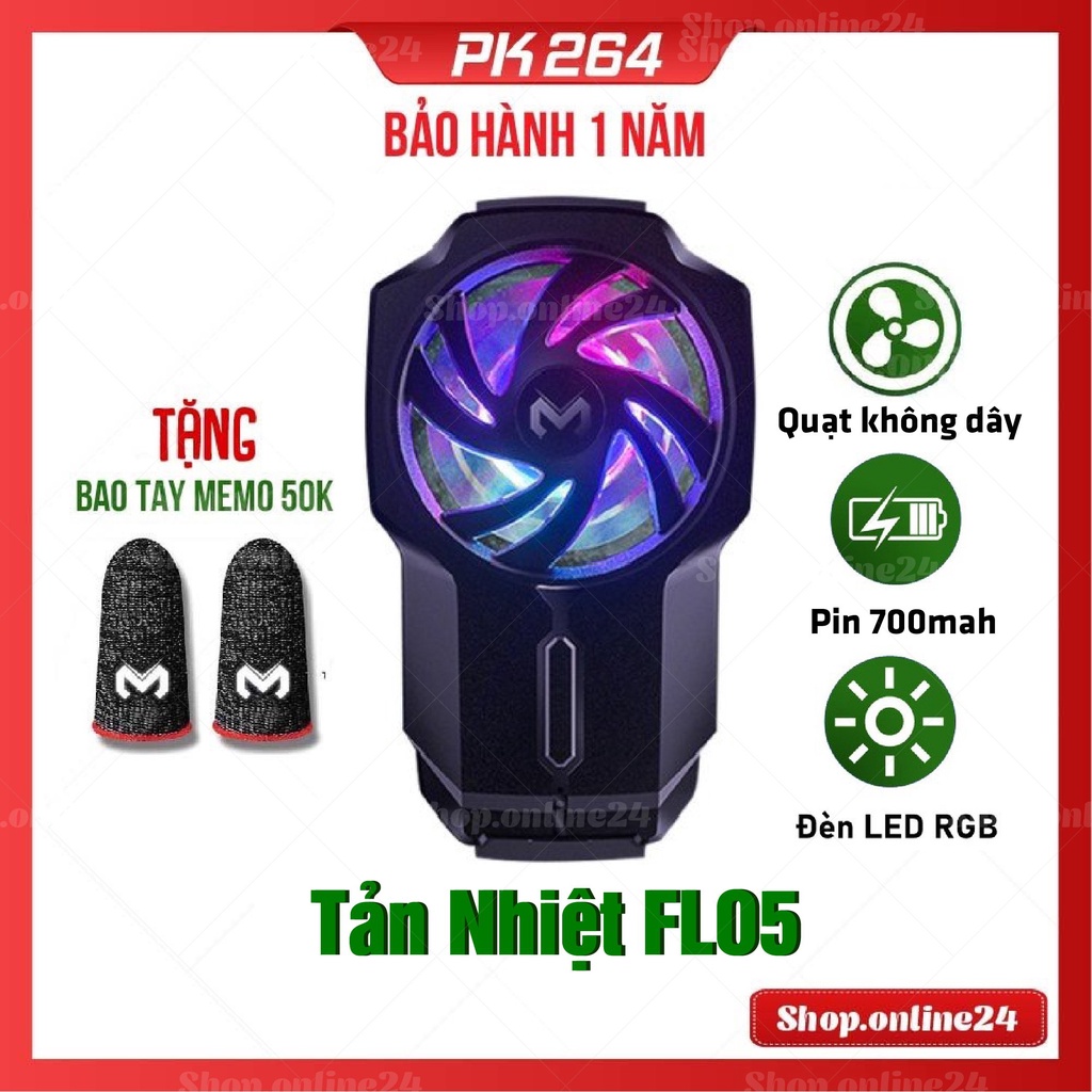 Quạt tản nhiệt MEMO FL05 Không dây Có led RGB Pin sạc cho điện thoại di động phiên bản mới nhất- Đến từ thương hiệu Memo, một trong những thương hiệu gaming khá nổi tiếng với những sản phẩm giá tầm trung chất lượng. Memo FL05 cũng không ngoại lệ, đây là quạt tản nhiệt di động khá hot trong năm 2021.