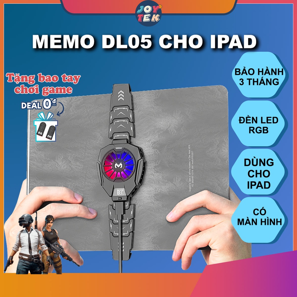 Điện Thoại & Phụ Kiện > Phụ kiện > Khác || Quạt tản nhiệt sò lạnh Memo Dl05 cho ipad máy tính bảng siêu mát có đèn led rgb, hiển thị nhiệt độ, siêu lạnh như blackCòn hàng