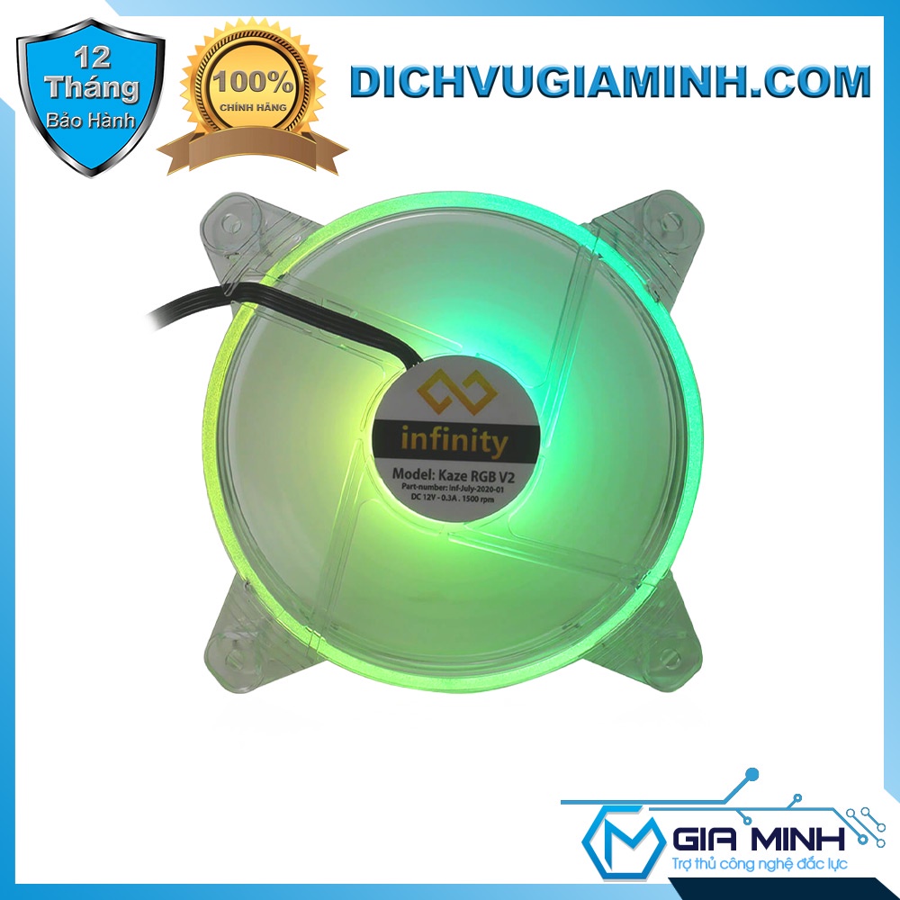 Máy tính & Laptop > Linh Kiện Máy Tính > Quạt và Tản Nhiệt || Quạt Tản Nhiệt Thùng Máy Tính Infinity Kaze V2 Led Rainbow RGB - Fan Case 12cmCòn hàng