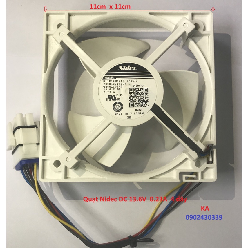 Giới thiệu Quạt Tản Nhiệt Tủ Lạnh Nidec 3 cánh 11 x 11, DC 13.6V 0.23A