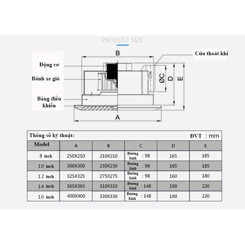 Kích thước: Bề mặt: 250 x 250mm (Khoét lỗ: 210 x 210mm)