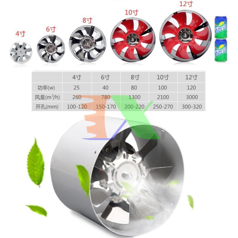 Quạt thông gió, quạt thông khí, quạt hút gió cho lều trồng GY-100 (20W) hay còn gọi là quạt hút gió dạng ống, quạt hút mùi dạng ống....
