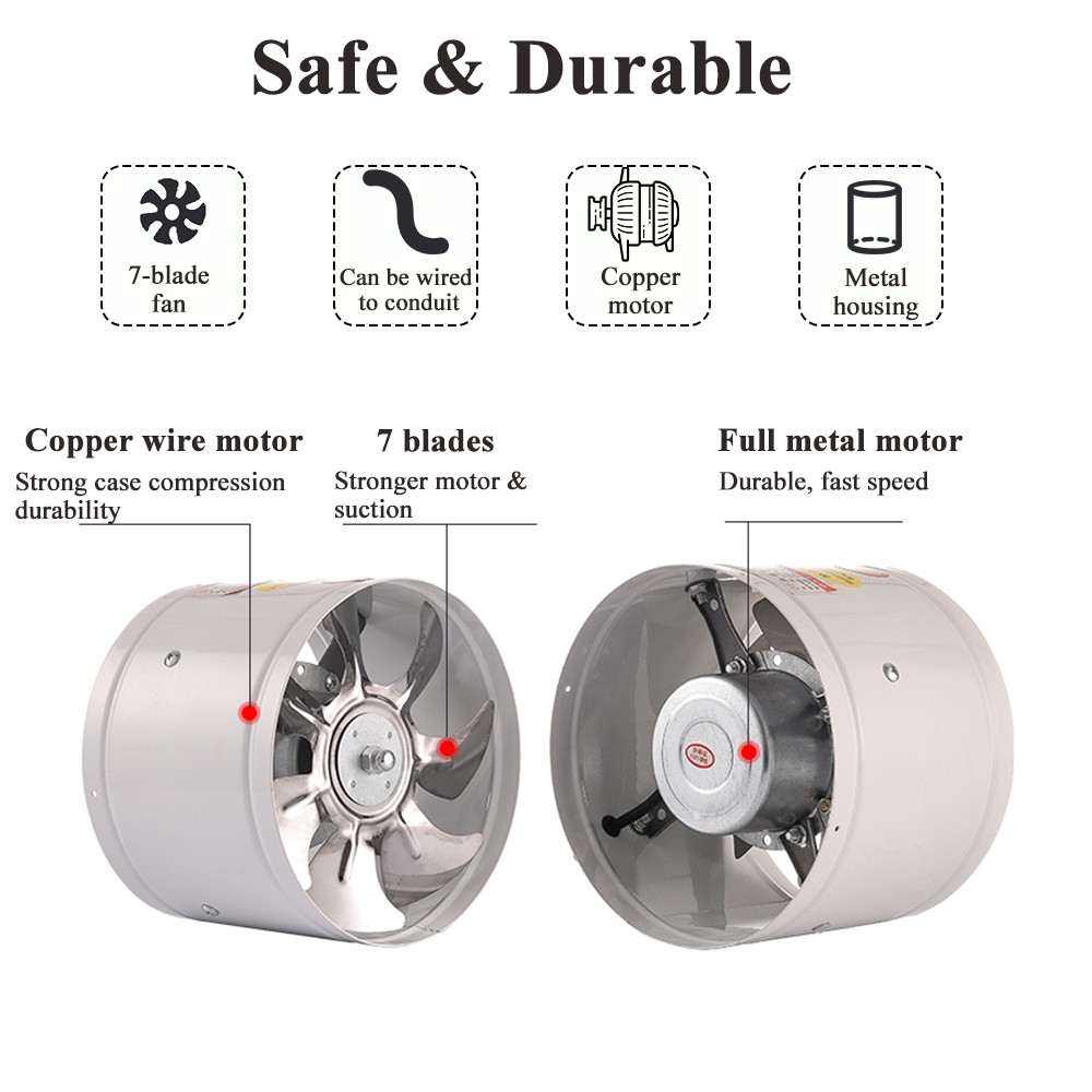 Quạt thông gió đường ống 100mm và 150mm, Quạt hút tăng áp đường ống, chất liệu thép [Kích thước ống: Φ100 và 150mm]