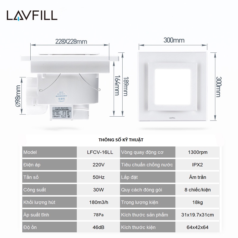 Thiết Bị Điện Gia Dụng > Thiết bị điện gia dụng nhỏ > Thiết bị xử lí không khí > Máy lọc không khí || Quạt thông gió hút mùi âm trần với đèn LED vuông, độ ồn nhỏ, hút khỏe với bề mặt 250x250mm LAVFILL LFCV-12LLCòn hàng