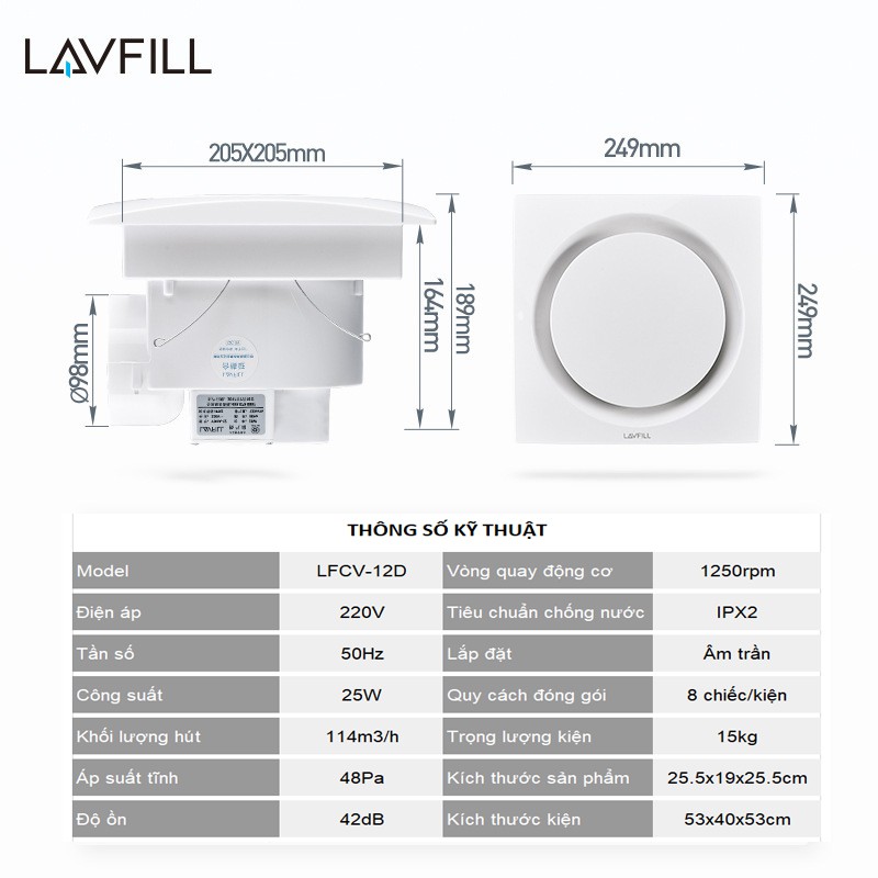 Thiết Bị Điện Gia Dụng > Thiết bị điện gia dụng nhỏ > Thiết bị xử lí không khí > Máy lọc không khí || Quạt thông gió, quạt hút gió âm trần-ốp trần không đèn LED Model LAVFILL LFCV-12DCòn hàng