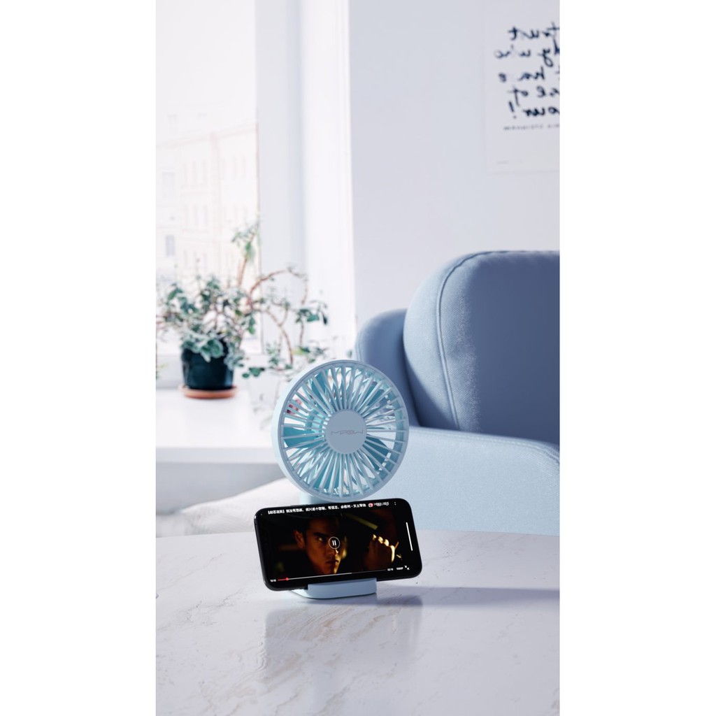 Quạt Mini Fan Mipow với kích thước nhỏ gọn với thiết kế cực kỳ đặc biệt khi có giá đỡ điện thoại đi kèm ngay trên chân quạt.Dung lượng pin lên đến 1.200 mAh, thoải mái tùy chỉnh tốc độ quạt với 3 mức độ, tự do điều chỉnh lên xuống cánh quạt cho mọi góc nghiêng – phù hợp với mặt bàn cao thấp khác nhau (lên đến 80 độ).