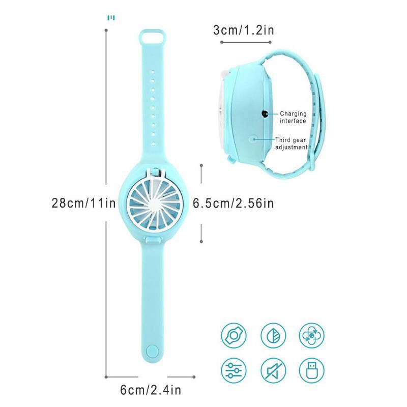 Quạt tích điện đeo tay sạc usb với 3 tốc độ mang phong cách độc đáo, tiện lợi khi sử dụngChất liệu nhựa ABS an toàn tuyệt đối
