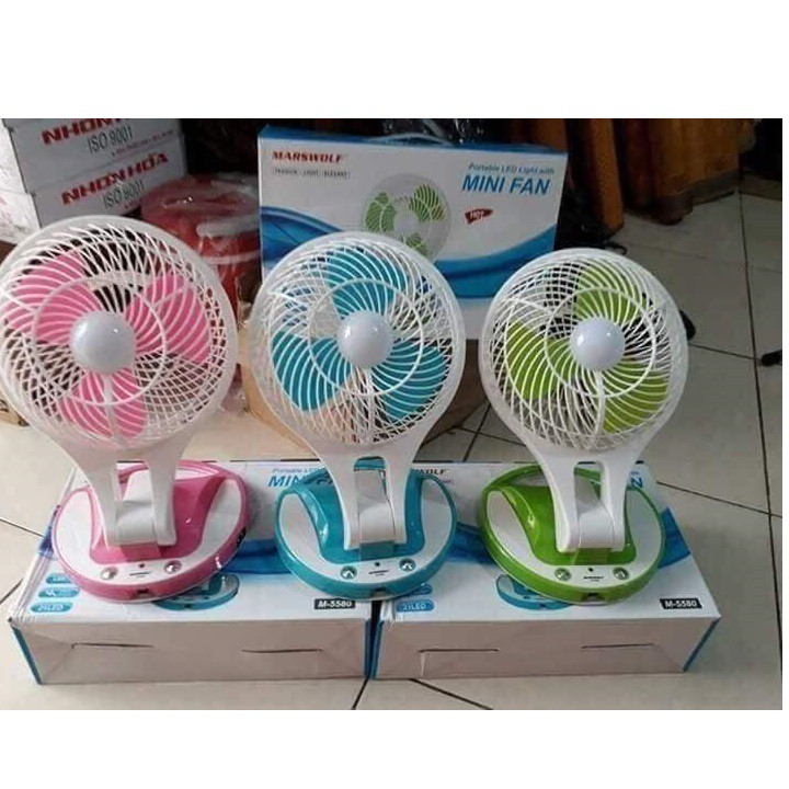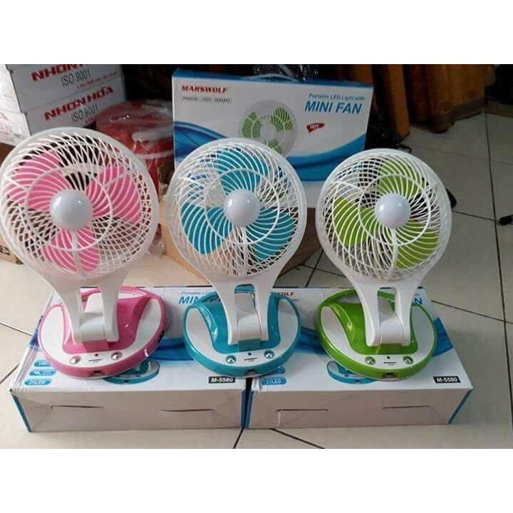 Quạt Tích Điện 5580 Mini Fan 2 In 1 Gấp Gọn