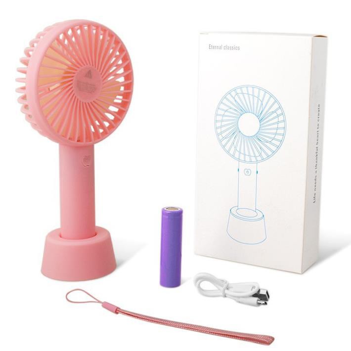 love love loveQuạt Tích Điện Cầm Tay Tích Điện 3 Tốc Độ Gió, có đế để bàn (Giao màu ngẫu nhiên)