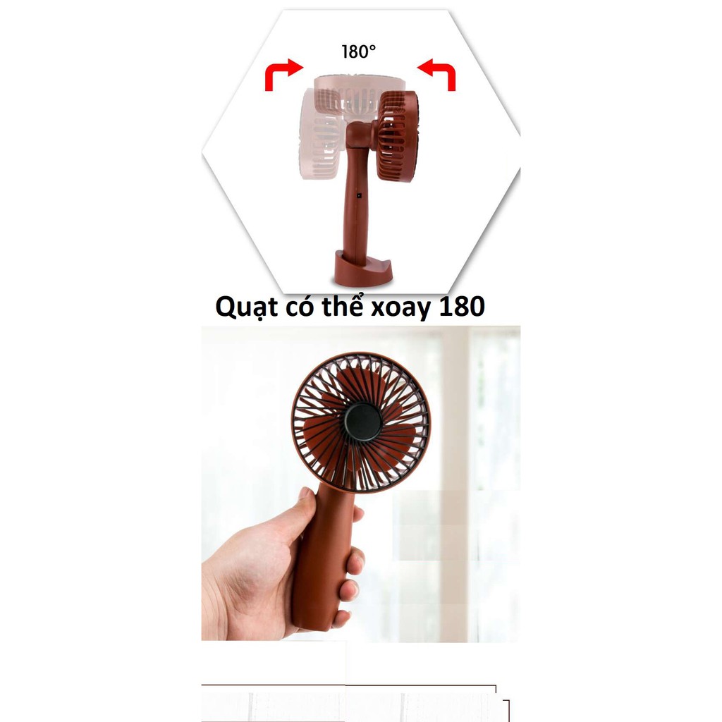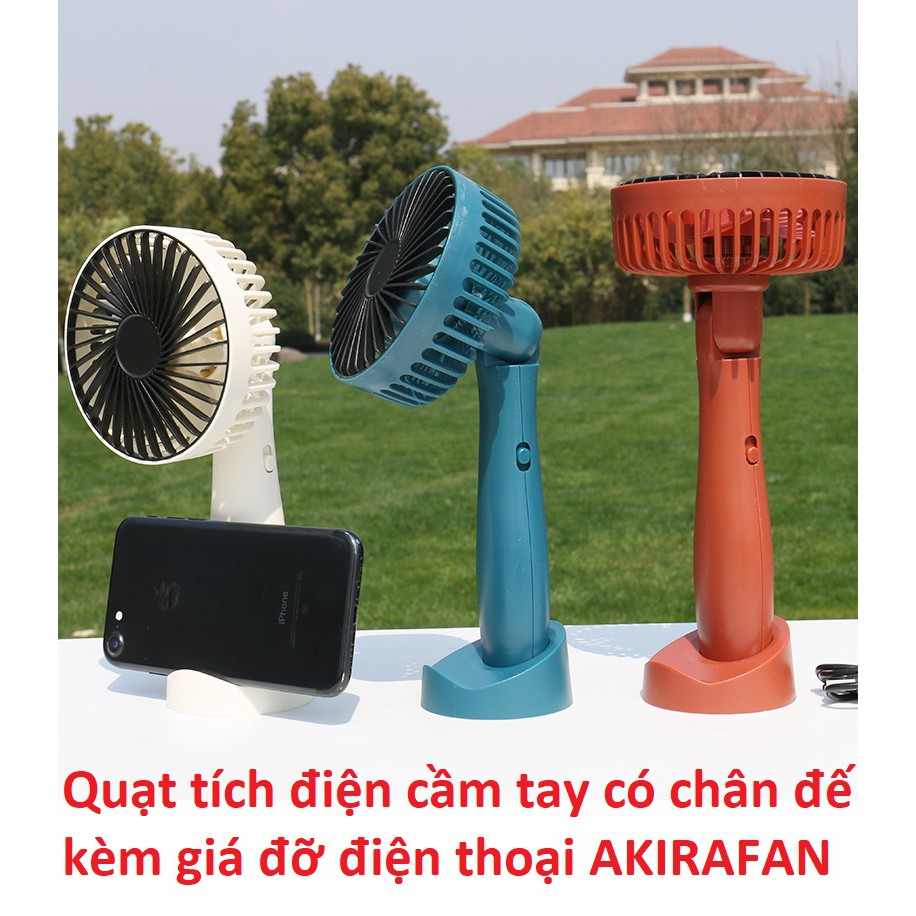 Quạt tích điện cầm tay xoay 360 độ có đế để bàn kèm giá để điện thoai siêu hot