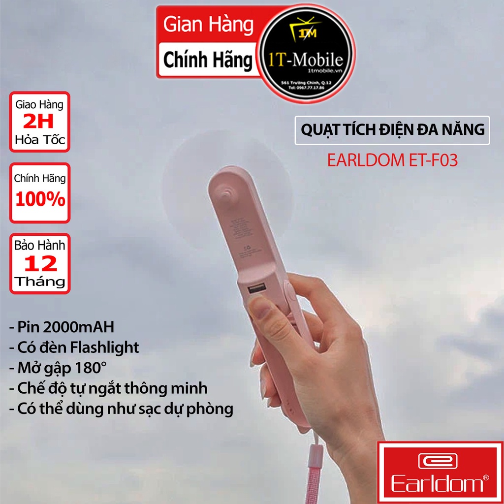 [Mã BMBAU50 giảm 10% đơn 99k] Quạt Tích Điện Đa Năng Earldom ET-F03 (Có Đèn LED)