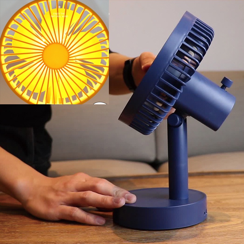 Quạt tích điện để bàn dùng pin sạc usb có đèn ngủ xoay 180 độ