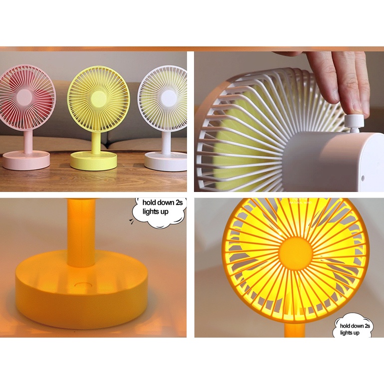 Điện Thoại & Phụ Kiện > Phụ kiện > Quạt USB & Quạt điện thoại || Quạt tích điện để bàn dùng pin sạc usb có đèn ngủ xoay 180 độCòn hàng