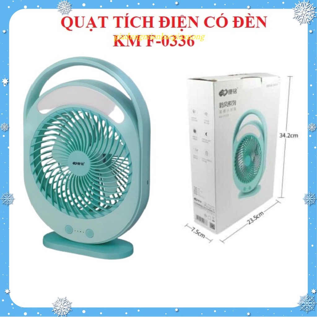 Giới thiệu QUẠT TÍCH ĐIỆN FREESHIPSẠC NHANH KM-F0336 CÓ ĐÈN LED TÍCH HỢP VỎ KHUNG XANH BIỂN.